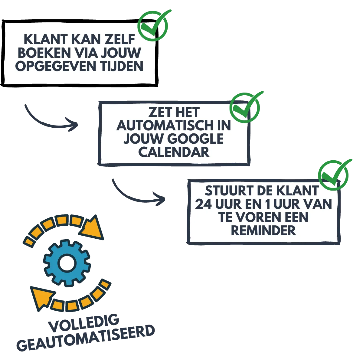 Het Systeem stuurt jou een notificatie van elke geplande afspraak en zet het in je Google Calender.