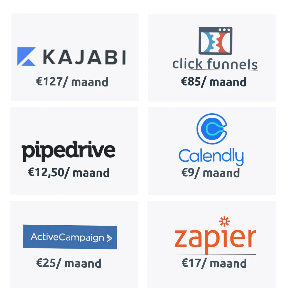 Het HighLevel CRM-systeem is beschikbaar vanaf €97,- excl. BTW per maand. Dit vervangt de noodzaak voor meerdere dure softwareprogramma's, aangezien het alle benodigde functies in één platform combineert.